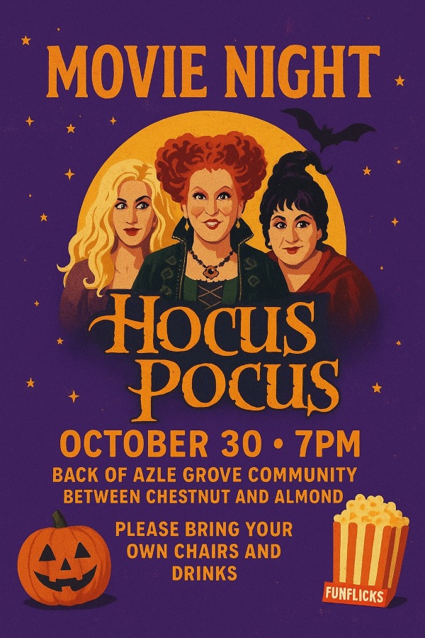 Join us for a magical night full of fun, laughter, and Halloween spirit as FunFlicks hosts a special outdoor screening of Hocus Pocus for the Azle Grove Community!